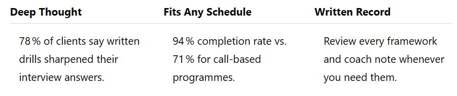 Elite email‑only coaching for busy product managers who value deep, written feedback.