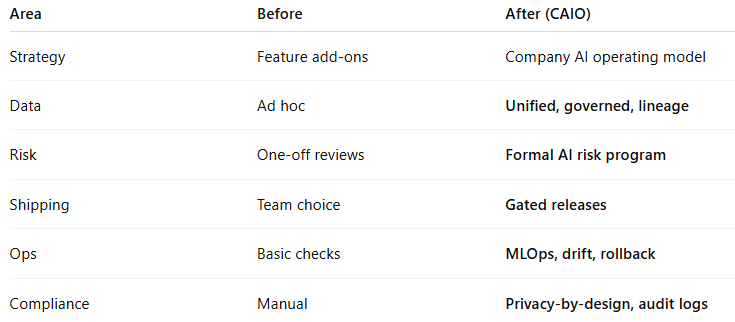 Impact: In finance, AI leadership = product leadership. Roadmaps and releases run through AI gates.